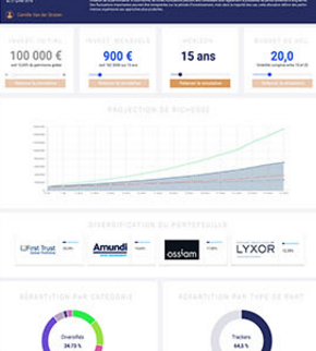 L’argument technologique : Fundee permet au conseiller financier de définir le profil de risque de son client et permet à l’investisseur de visualiser dans le temps ses différentes opportunités de création de richesse pour un investissement donné.